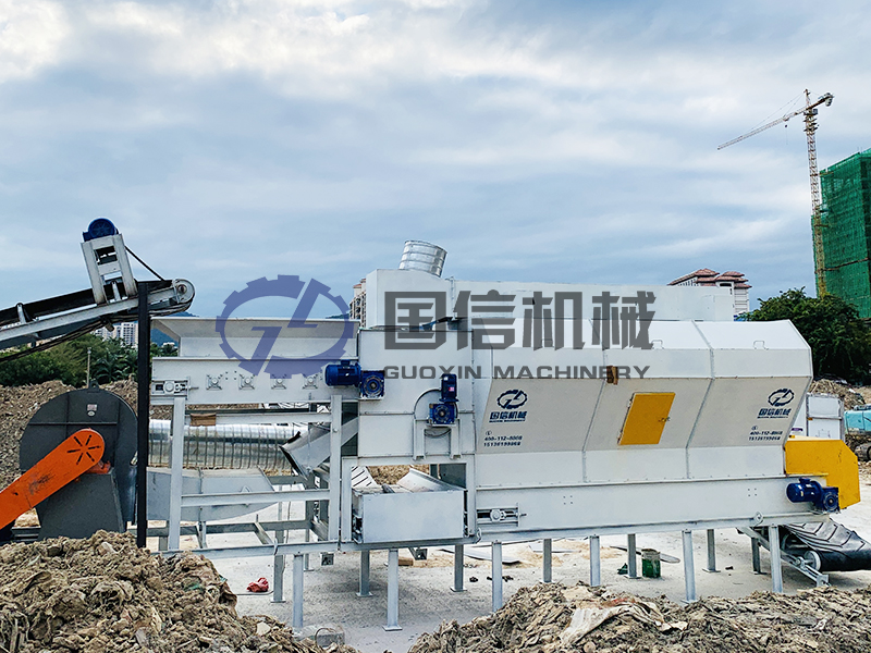 走進國信機械垃圾分揀設(shè)備的案例現(xiàn)場,映入眼簾的是一片繁忙景象。這是建筑垃圾分揀項目,位于城市郊區(qū)的一處大型建筑垃圾處理廠,場地開闊,各種設(shè)備有序排列。國信機械的設(shè)備在場地中央,顯得格外醒目。